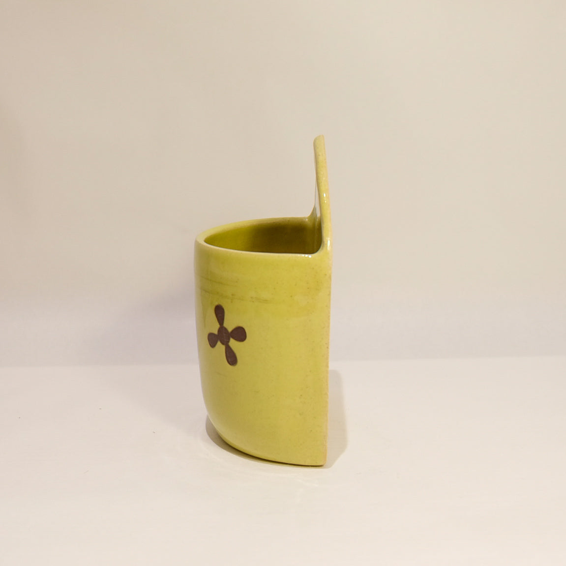Add a dose of vintage charm to your walls. Finished in a glossy chartreuse glaze and adorned with hand-applied brown petal motifs, it’s playful, functional, and full of character. Ideal for air plants, herbs, or dried flowers, this small-batch planter brings color and warmth to kitchens, hallways, or anywhere you need a cheerful touch.